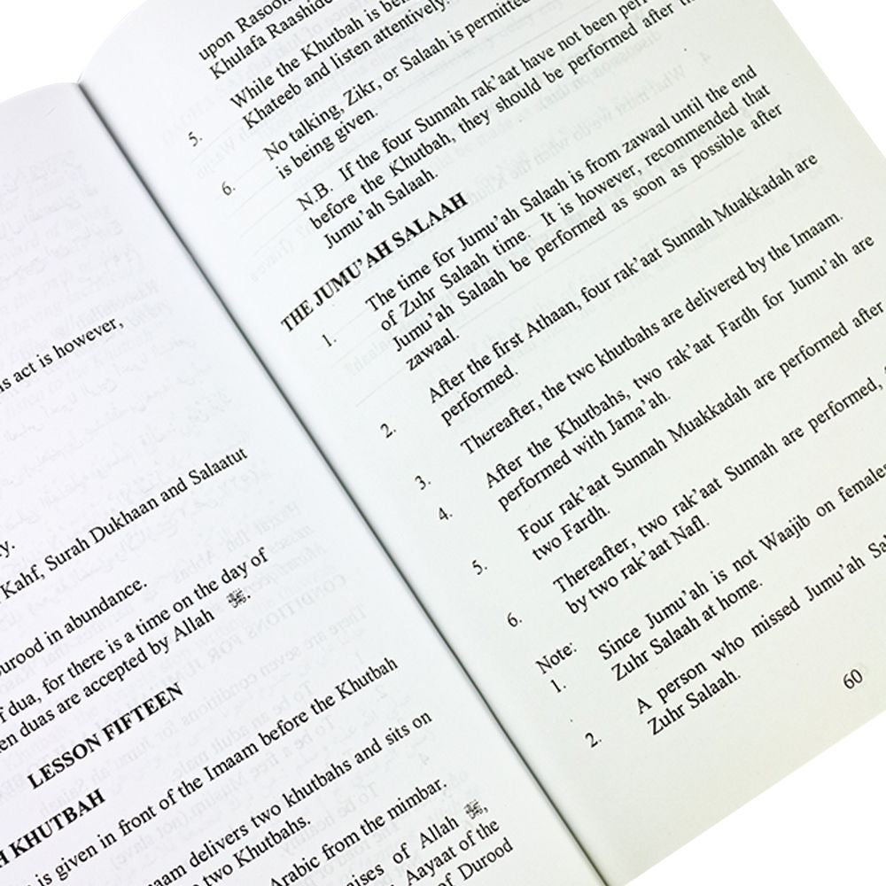 The LMA has developed a series of kitaabs on Fiqh according to the Math’hab of Imaam Shaafi’ee. These kitaabs are graded according to the level of understanding of the children. Fiqhul IslamShaafi’ee Book 4 covers the important topics of Athaan, Salaat and Salaatul Jumu’ah, Eidain, Janazah. Some important rules pertaining to women has also been included.